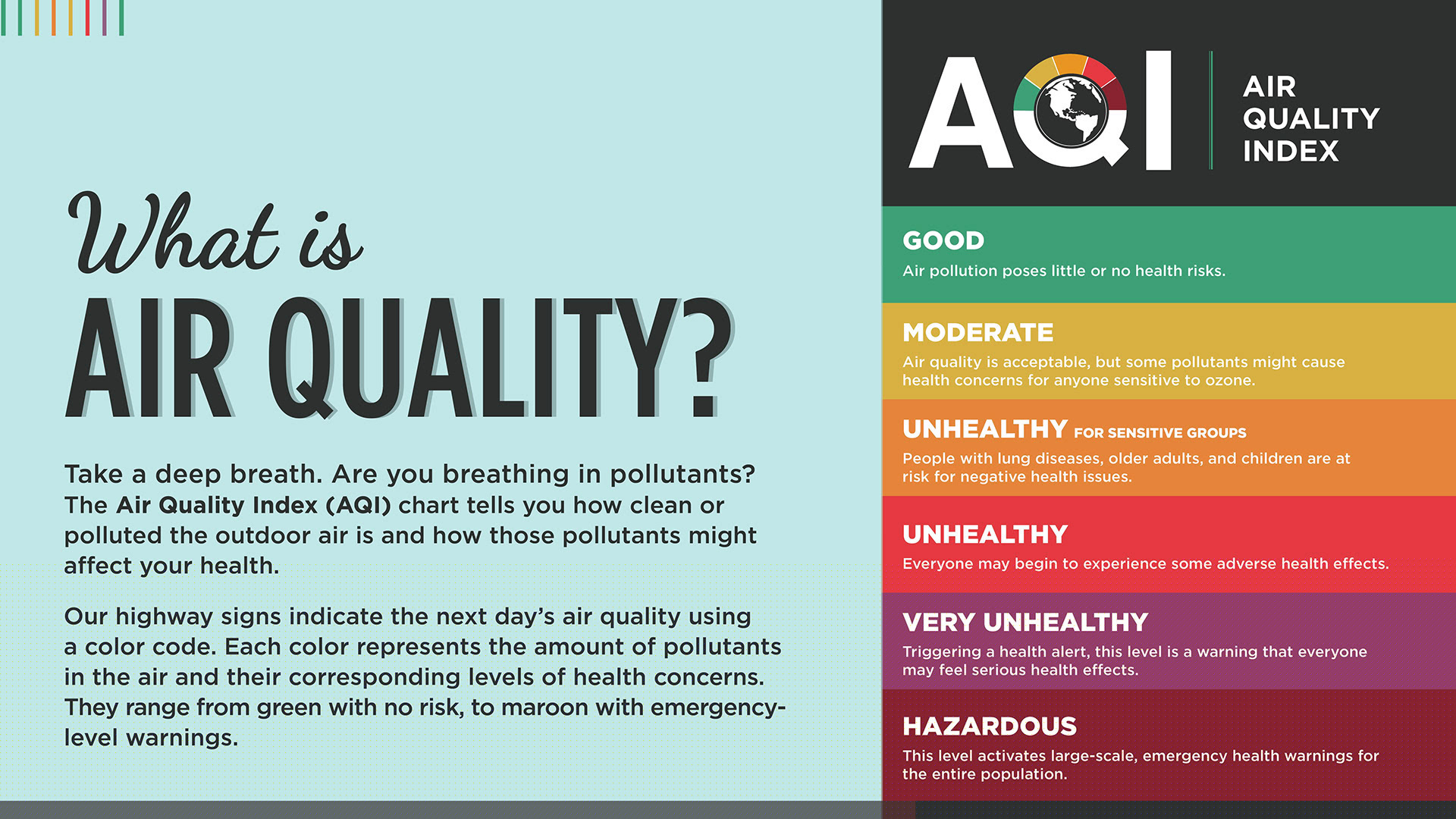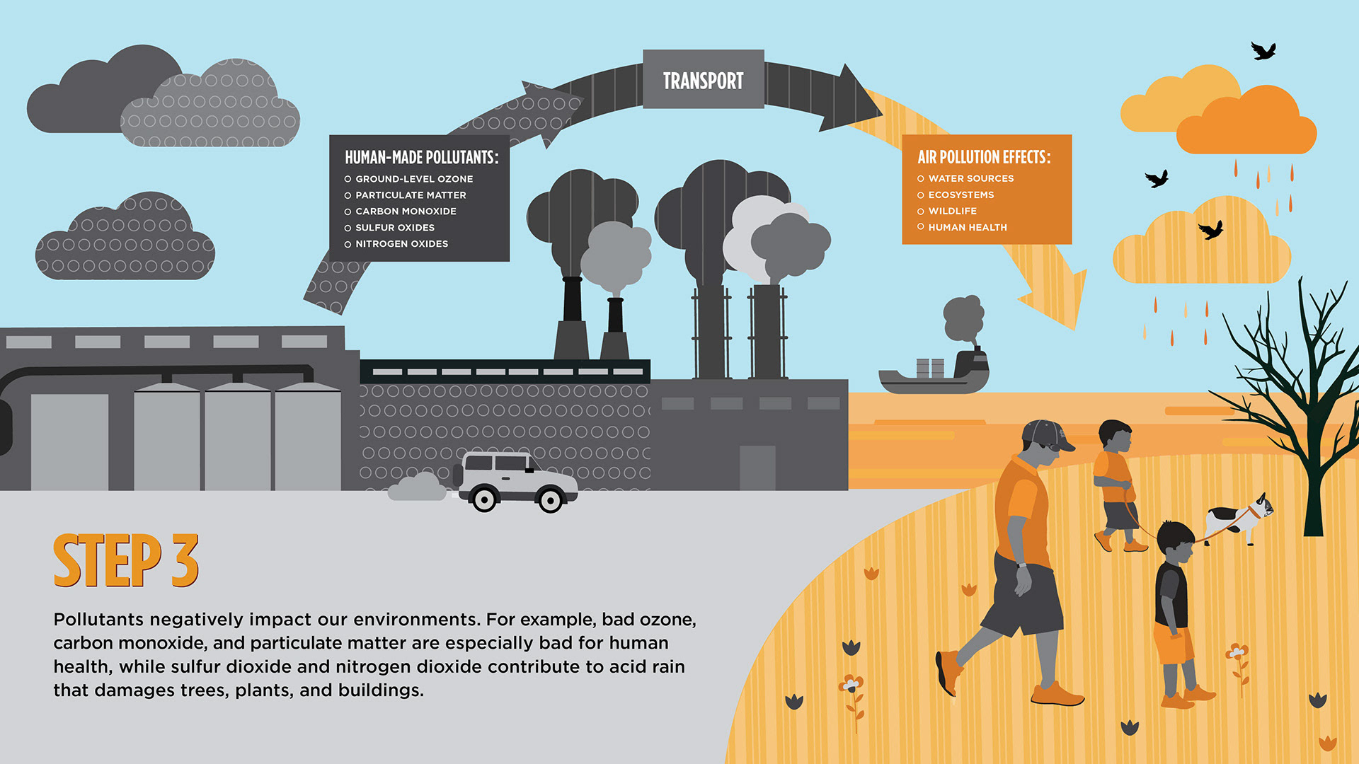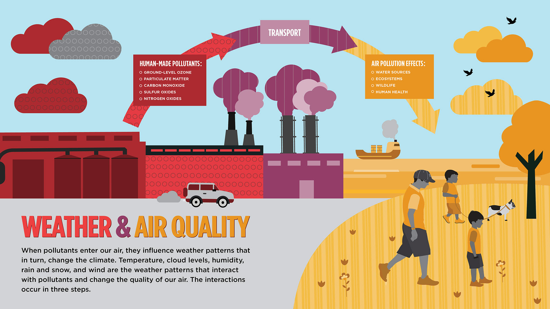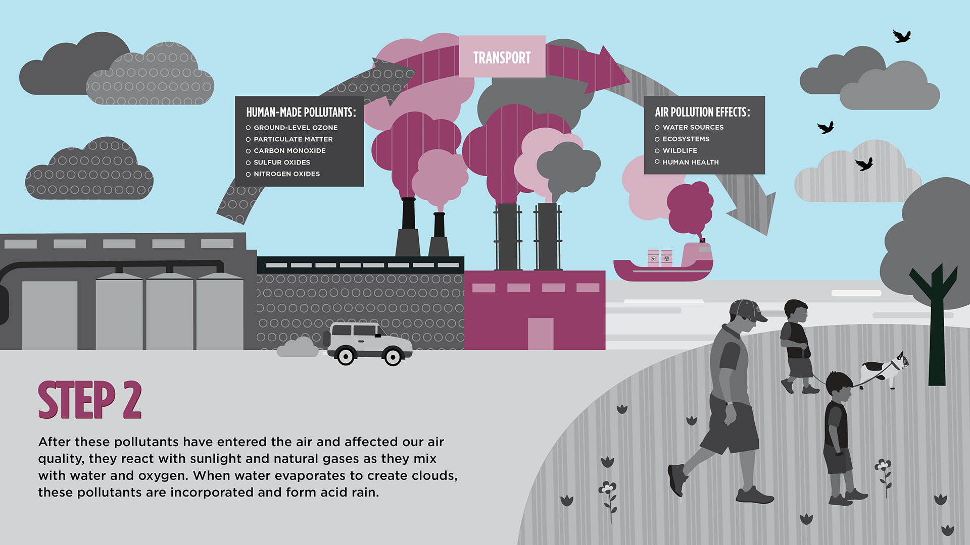 The slides above are illustrated infographics I created for an Air Quality Exhibit at the Saint Louis Science Center. I used bright colors, detailed illustrations, and St. Louis imagery to engage the viewer and help break down complex information.